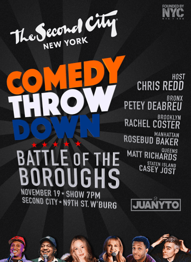 UPCOMING EVENT ‣ COMEDY THROWDOWN: THE BATTLE OF THE BOROUGHS • SECOND CITY NEW YORK • NOVEMBER 19, 2025 AT 7PM